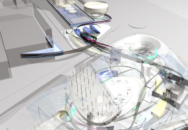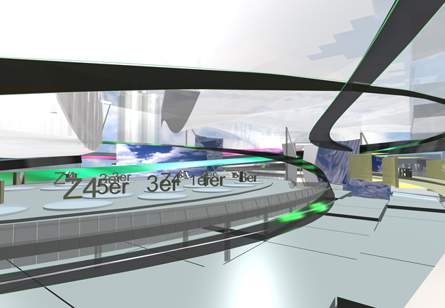 Projekt im Atelier Brückner, Stuttgart Leistung (09/2006): Architektur-, Raumkonzept, Modell, Präsentation Status: Nicht gewonnen Copyrights: Atelier Brückner