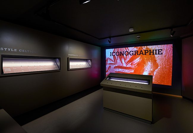 Im Bereich „Schätze“ werden bedeutende Funde auf einer Umrisskarte Luxemburgs geografisch situiert und als leuchtende Highlights inszeniert. Die „Herstellung“ wird durch ein großes, rundes Panorama mit Abbildungen der Münzmanufaktur repräsentiert, in dem Vitrinen stecken. Hier werden die unterschiedlichen Epochen von den keltischen Manufakturen