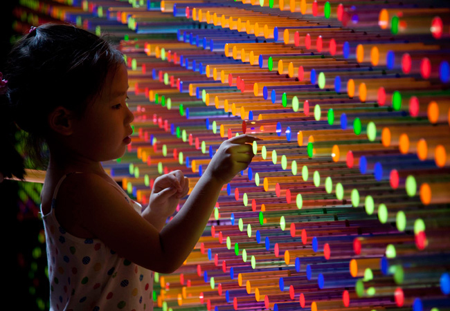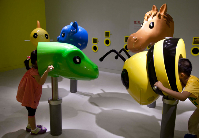 »Für eine Zielgruppe drei- bis sechsjähriger Kinder wurde innerhalb des Shanghai Science and Technology Museums eine eigene Dauerausstellung eingerichtet. Im Children Rainbow Land können die kleinen Besucher ihre natürliche Neugier ausleben und spielerisch Phänomene aus der Natur, Umwelt und Technologie kennen lernen. Die Kinder entdecken entlang des Regenbogenpfades, der den Parcours durch die Ausstellung markiert, sechs Bereiche: Kids Lab, Magic Forest, Soft Meadow, Animal Park, City of Light und Funky Studio. Die einzelnen Themen erforschen sie an unterschiedlichen interaktiven und multimedialen Stationen durch Suchen, Finden, Spielen, Verstehen und Handeln. Am Ende des Parcours können die Kinder im Home of Rainbow zusammen ein Haus bauen, ausgestattet mit Bauhelmen, Westen und verschiedenen Bauelementen.«