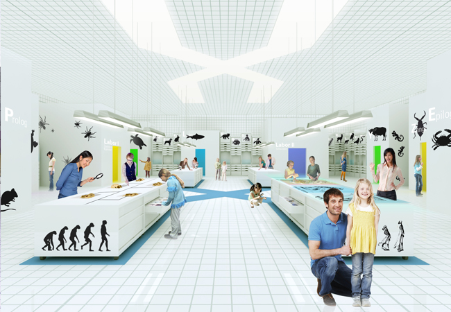 Wissenschaft, Abenteuer und Umweltbildung: Das DARWINEUM in Rostock bietet eine europaweit einzigartige Kombination musealer Ausstellung und lebendiger zoologischer Sammlung. Die Dauerausstellung entführt den Besucher, ausgehend von Darwins Evolutionstheorie, auf eine Reise durch die Jahrmillionen der Erdgeschichte. Der abwechslungsreiche, interaktiv inszenierte Parcours veranschaulicht die Evolution des Lebens und die kulturelle Evolution des Menschen. Beiden Themen ist ein eigener Ausstellungsbereich gewidmet. Eingebettet dazwischen liegt eine großzügige Tropenhalle – das neue, attraktive Zuhause der Menschenaffen des Rostocker Zoos. Das DARWINEUM bietet einen neuen musealen Typus unterhaltender Wissensvermittlung.