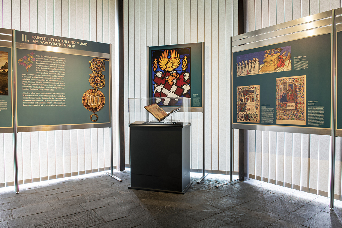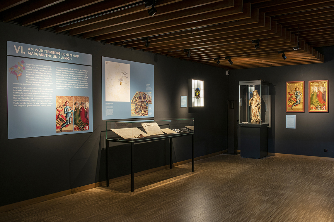2020 jährte sich der Geburtstag der Margarethe von Savoyen zum 600. Mal. Das runde Jubiläum gab den Anlass für eine Sonderausstellung des Landesarchivs Baden-Württemberg über diese herausragende Frau des späten Mittelalters. Dreimal mit hochadeligen Männern verheiratet, war sie nacheinander Königin von Sizilien, Kurfürstin von der Pfalz und schließlich Gräfin von Württemberg. Die bedeutende Fürstin war vernetzt in ganz Europa. Ihre außergewöhnliche Biografie spiegelte sich in den kostbaren und teils einzigartigen Stücken, die die Ausstellung im Hauptstaatsarchiv Stuttgart zeigte. Eine weitere Station der dreisprachig (deutsch – französisch – italienisch) angelegten Schau war das schweizerische Morges am Genfersee. Dezember 2021 bis März 2022 war sie in Turin in Italien zu sehen.