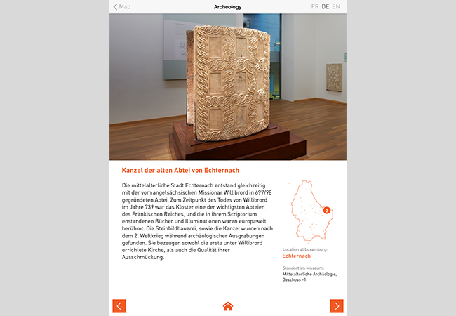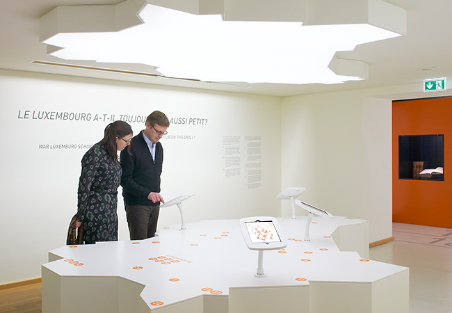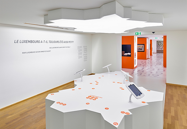Der neu gestaltet Auftakt/Prologue des gesamten Musée national d’histoire et d’art in Luxemburg gibt dem Besucher eine kurze Einführung in die Landes- und Sammlungsgeschichte des Museums bevor er in die eigentliche Ausstellungsbereiche gelangt. Am Anfang der begehbaren Timeline, die auch als Bodenintarsie Orientierung bietet, kann der Besucher an einem Tisch, in der Form von Luxemburg, verschiedene Highlights des Museums über interaktive iPads explorieren. Über 30 Fundorte, auch als Markierungen auf dem Tisch und Boden, geben eine Übersicht über die Sammlungsschwerpunkte des Museums und wo sich diese Objekte auch im Haus befinden.