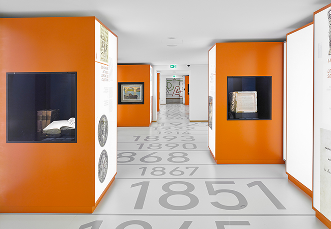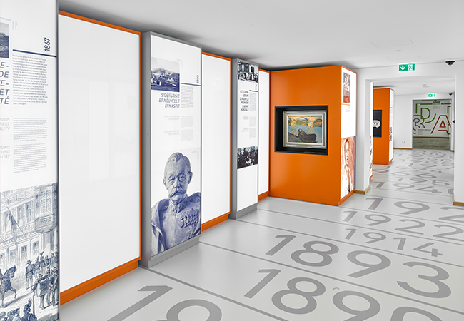 Die Ausstellung wurde in einem denkmalgeschützten Gebäude geplant und umgesetzt.