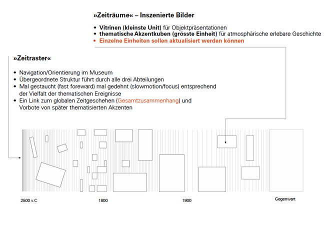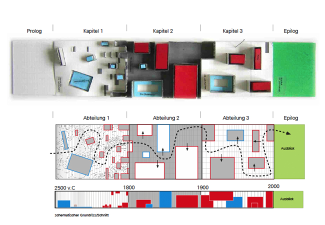 In einem Wettbewerb wurden unterschiedliche Gestaltungsbüros angefragt, ein Vorkonzept zu entwickeln, welches die Grundlage für den Umbau eines Bürogebäudes für das zukünftige Stadtmuseum sein sollte. Konzeptidee war ein „topografischer Zeitraum“ der die parallel Entwicklung der drei Hauptthemen „Wasser“, „Gesellschaft“ und „Wirtschaft“ im Grundriss der Architektur widerspiegelt. Unterschiedliche Konzeptmodelle zeigten ein Grundsätzliches Verständnis im Umgang von Inhalt und Raum.