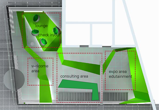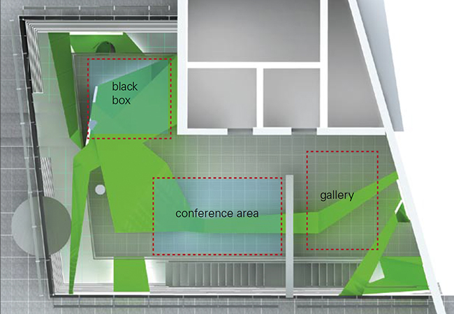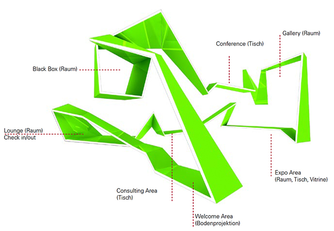 Projekt im Atelier Brückner, Stuttgart Leistung (01/2008): Raum-, Licht-, Medienkonzept Status: Nicht realisiert Copyrights: Atelier Brückner