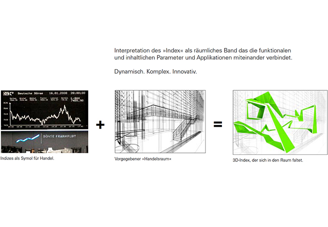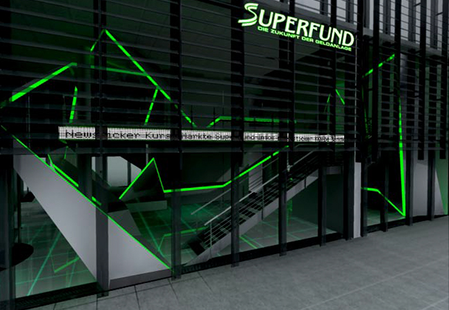 Im Zuge der Neugestaltung der Deutschen Börse in Frankfurt wurde das Atelier Brückner damit beauftragt für das Investment Unternehmen Superfund in Frankfurt eine „Investment Edutainment World“ zu entwickeln. Die Räumlichkeiten mitten in Frankfurt sollten zugleich auch die neue Visitenkarte des Unternehmens darstellen. Finally, I would like to thank you for the guidance provided during the period of my original term papers for sale employment; Neben klassischen Beratungsbereichen im Obergeschoss würde im Erdgeschoss eine Edutainment Ausstellung über die Finanzwelt thematisiert. Das finale Raumbild leitete sich in Form einer abstrakten Index Kurve ab, die in den Raum gefaltet wurde und somit auch die beiden räumlichen Ebenen miteinander verband. Der räumliche Index wurde mit unterschiedlichen Themen bespielt und transformierte sich räumlich auch in unterschiedliche Anforderungen.