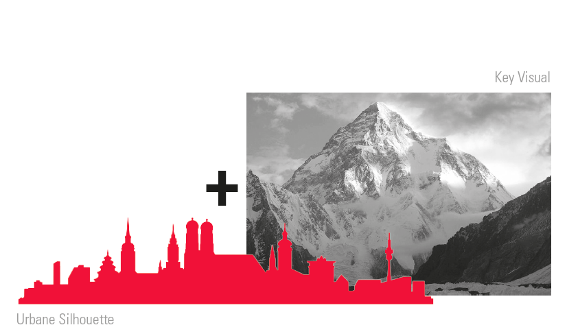 Leitfaden war die Idee vor dem starken visuellen CI Bild des K2 Berges eine Dachlandschaft zu gestalten.