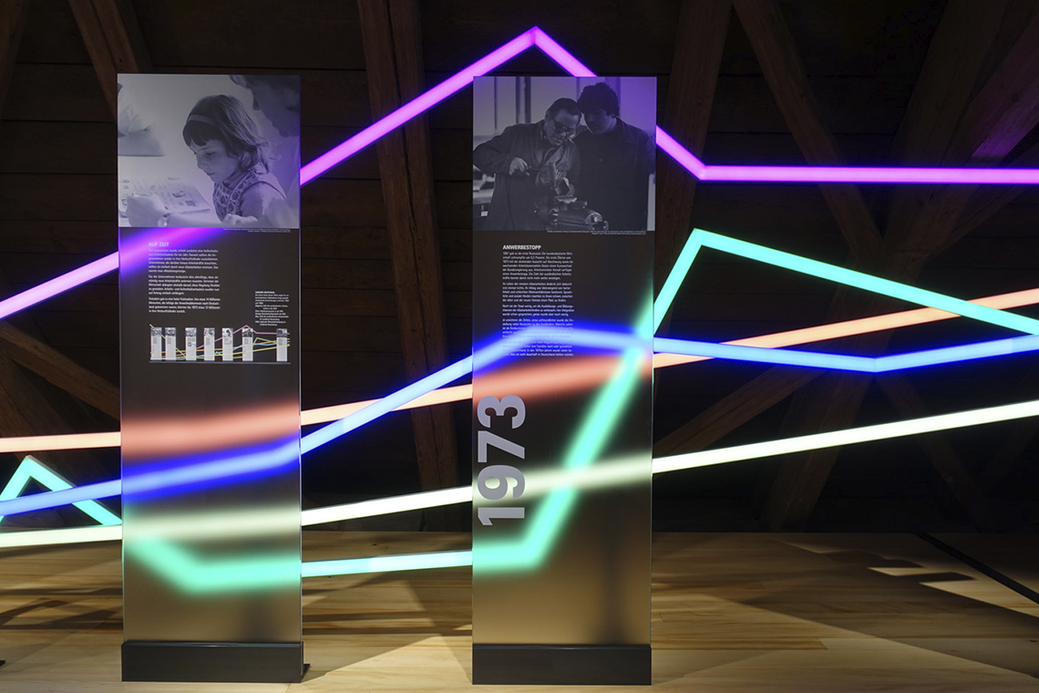 Leistungen: Umsetzung als Generalunternehmer. Gestaltungskonzept und Szenografie. Grafik- und Medienkonzept. Planung und Umsetzung der gesamten Ausstellung.